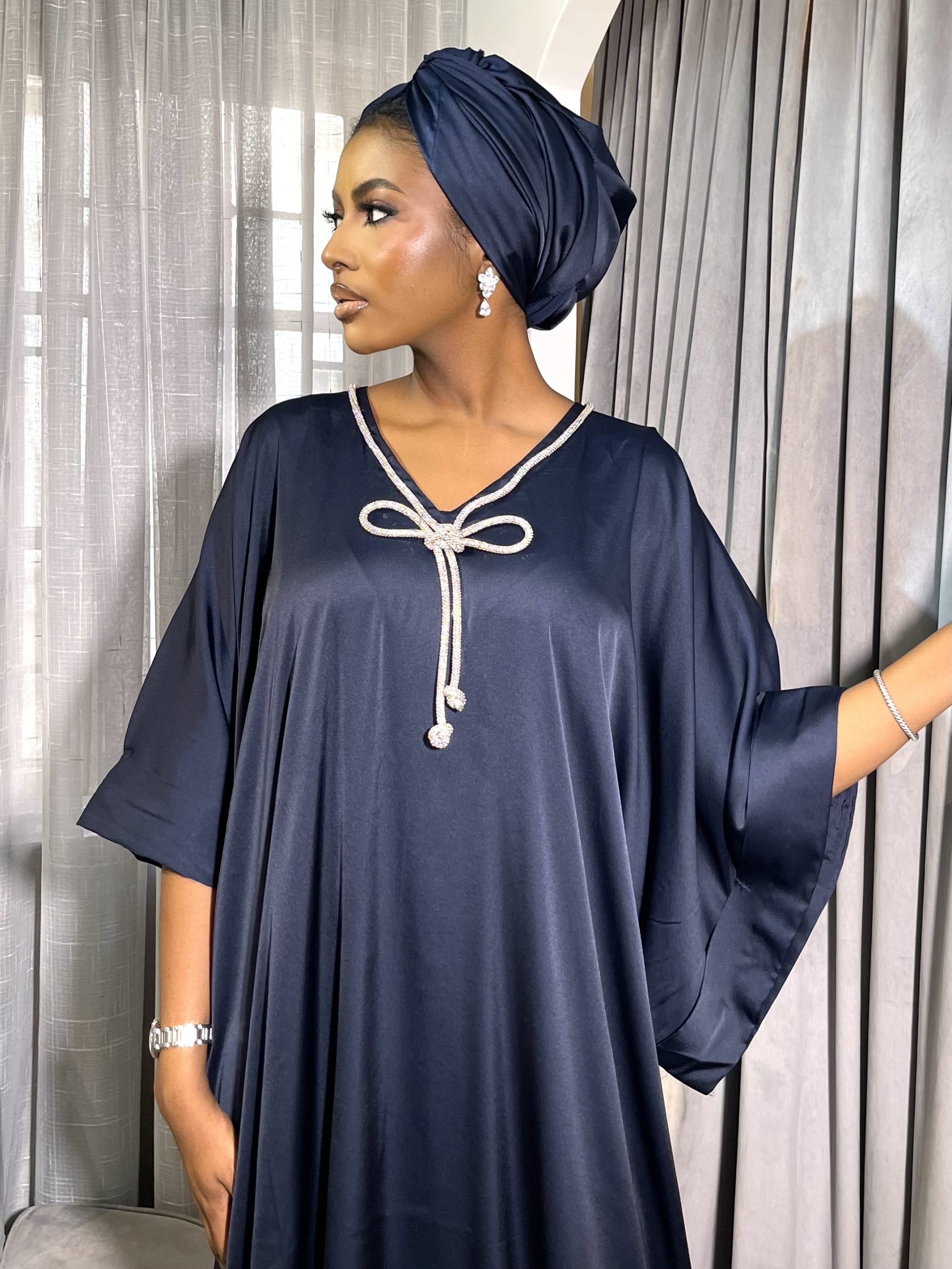 – navy blue silk fabric